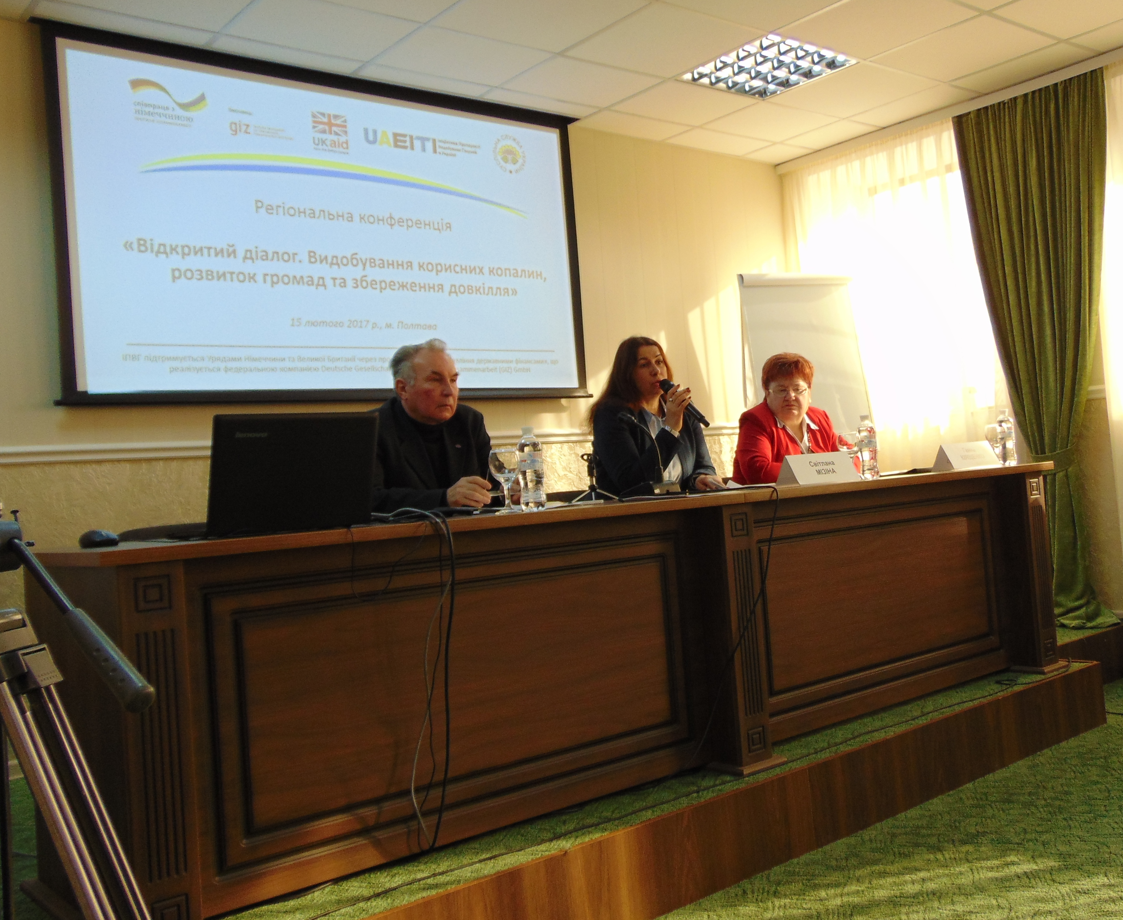 15 лютого в Полтаві відбулась регіональна конференція ІПВГ на тему “Видобування корисних копалин, розвиток громад та збереження довкілля”. Захід було проведено задля того, щоб ініціювати активне обговорення екологічних проблем регіонів, пов’язаних з діяльністю видобувних компаній та використання механізмів Стандарту ІПВГ для їх вирішення. У конференції брали участь представники органів державної влади, місцевого самоврядування, видобувних компаній та територіальних громад Полтавської області.