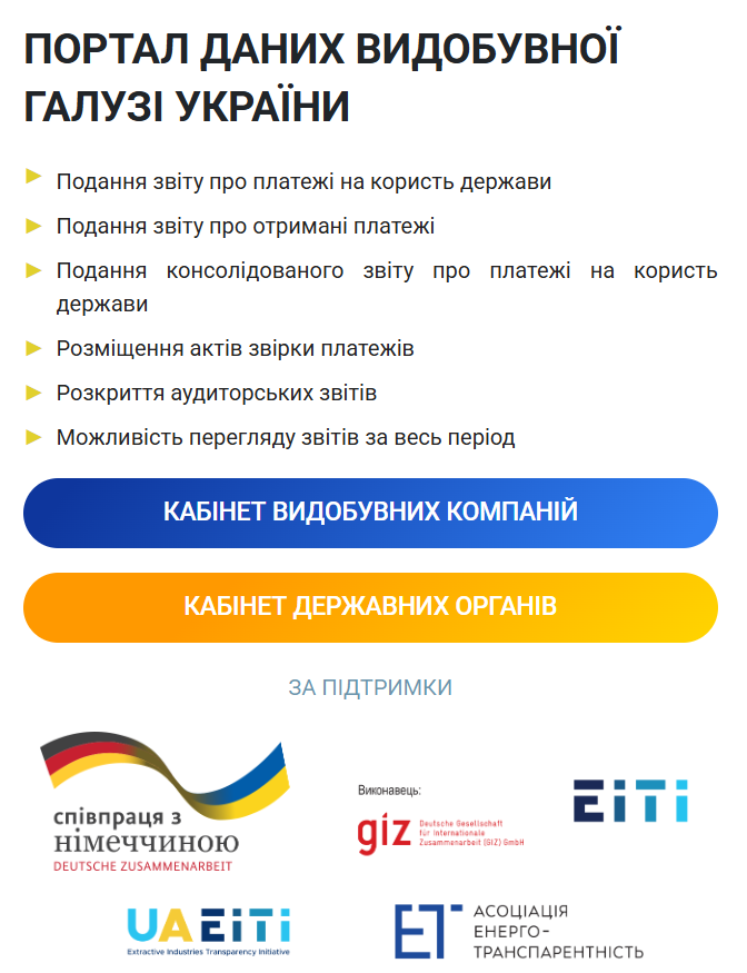 Доопрацювання функціоналу Порталу ІПВГ реалізується за ініціативи ГО НОВА Енергія “Підтримка впровадження Порталу ІПВГ для забезпечення прозорості відновлення видобувного сектору та енергетичного переходу в Україні (EITI4RESETUA)”, яка виконується за підтримки проєкту МТД «Ефективне державне управління завдяки GovTech і прозорості в Україні», що впроваджується федеральною компанією Deutsche Gesellschaft für Internationale Zusammenarbeit (GIZ) GmbH за дорученням Уряду Німеччини, у партнерстві з Директоратом ресурсоефективної трансформації Міністерства енергетики України.