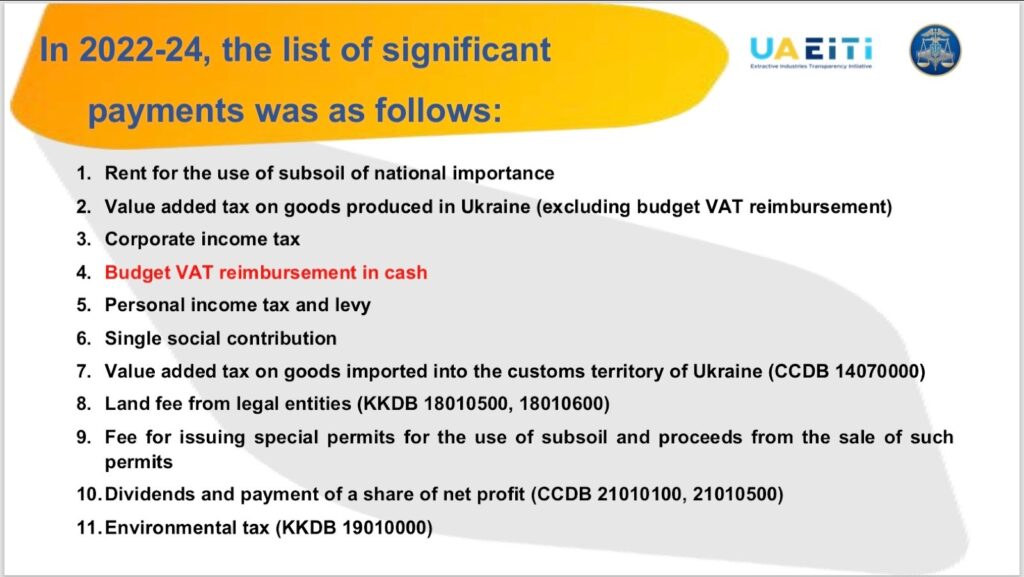 Щоб зрозуміти, чи отримують ці групи непропорційну вигоду від державних механізмів, аналітики звернулися до відкритих даних ІПВГ України. Мета була максимально практичною: зіставити суми податків, які сплачують найбільші залізорудні компанії (у розрізі бенефіціарних власників), із сумами бюджетного відшкодування ПДВ, що надходить їм із державного бюджету. Для цього використали машинозчитувані дані, які охоплюють інформацію про 11 суттєвих платежів у видобувній галузі: ренту за користування надрами, ПДВ, податок на прибуток, ПДФО, єдиний соцвнесок, екологічний податок, дивіденди, плату за спеціальні дозволи, імпортний ПДВ та інші платежі, які формують повний податковий портрет компаній. Особливу увагу приділяли бюджетному відшкодуванню ПДВ — єдиному платежу, який рухається у зворотному напрямку, від держави до бізнесу, і є грошовою формою державної підтримки експортоорієнтованих виробників.