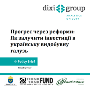 Тип публікації: Брошури та посібники Дата публікації: 19 Червня, 2016 Аналітична записка “Прогрес через реформи: як залучити інвестиції в українську видобувну галузь” Додатки: Аналітична записка “Прогрес через реформи: як залучити інвестиції в українську видобувну галузь” Аналітична записка "Прогрес через реформи: як залучити інвестиції в українську видобувну галузь" (DiXi Group, 2016)