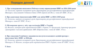 20 травня 2025 року, під головуванням Заступника Міністра енергетики України Миколи КЛІСНИКА, відбулося чергове засідання Багатосторонньої групи з імплементації Ініціативи прозорості у видобувних галузях (ІПВГ).
